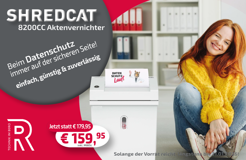 Beim Datenschutz immer auf der sicheren Seite - einfach, günstig und zuverlässig! Der Shredcat 8200CC ist ein platzsparender Papier- und Akten...