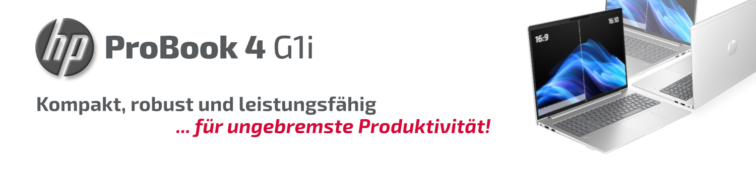 Kompakt, robust und leistungsfähig! Das neue HP ProBook 4 G1i ist die perfekte Wahl für professionelles mobiles Arbeiten mit Fokus auf KI, Sicherheit und Mobilität. Mehr Übersicht mit dem blendfreien 16“ IPS-Display im 16:10 Format und ausgestattet mit dem Intel Core ULTRA 7-255U Prozessor mit einer 12TOPS NPU für KI-Aufgaben, 24 GB DDR5 Arbeitsspeicher, 512 GB PCIe NVMe SSD und MS Windows 11 Professional bewältigt das ProBook 4 G1i auch komplexe Aufgaben.